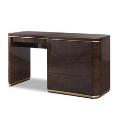 Immerse yourself in the luxurious Emerald bedroom sanctuary, centered around the Emerald Bed, inviting relaxation and rejuvenation. Enhancing this centerpiece are marble top nightstands and a stylish vanity, featuring the captivating starburst design of the Emerald Collection. These pieces seamlessly blend into the opulent ambiance of your retreat. Complete the ensemble with a matching upholstered bench for added comfort and refinement.