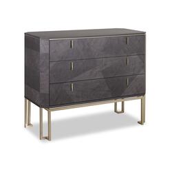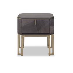 The Bond bedroom presents a delicately balanced blend of luxury and style that effortlessly enhances any room. Featuring unique geometric shapes and irregular plate patterns, it creates a signature look that's both modern and inviting. Crafted with the finest veneers and complemented by interlaced metal bases, this collection radiates elegance in every detail.