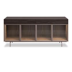 Elevate your space with the 4-Door Credenza from the Link Collection, boasting a blend of tradition and modernity. The touch-latch system, LED lighting, and air hidden hinges add functionality and style.
