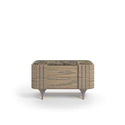 Elegante y funcional, esta mesita de noche ofrece espacio de almacenaje adicional sin renunciar al estilo. Su diseño limpio se realza con la opción de una tapa de mármol biselado Standard o una tapa de porcelánico, ideal para un look más contemporáneo.
