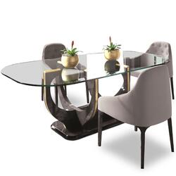 La mesa de comedor SOHO, destinada a ser la pieza de referencia, es el epítome de la artesanía perfecta y la atención al detalle. Con la tapa de cristal, presenta un aspecto retro dinámico hecho de una sugerente combinación de líneas rectas y curvas, sólidos y huecos. La base lleva un detalle de metal que crea una coincidencia visual con las bases de los aparadores y vitrinas.
