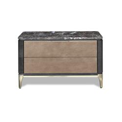 El dormitorio Soho se fabrica en cualquiera de los acabados Evolution. En madera natural o lacado, el dormitorio Soho es puro refinamiento contemporáneo. Cuenta con una impresionante cama con el cabezal tapizado y elegantes patas en latón.