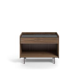 The LINK Bedroom harmonizes serene simplicity with function, featuring a streamlined bed and the matching bedside tables with Sahara Noir porcelain top, that balance utility and design.