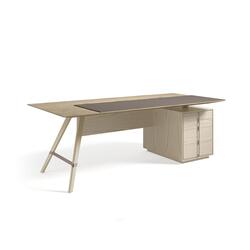Elegance and functionality in perfect harmony. This executive desk blends lightness and stability with a modern design: slender legs on one side and a storage pedestal on the other. Its minimalist modesty panel enhances its sophistication, while the leather detail on the top adds a touch of distinction.