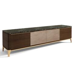 The Soho TV furniture transmits the artisanal manufacture of all Hurtado pieces. A functional design but full of luxurious connotations, which are reaffirmed in glamor with marble or wood tops and fronts in leather or wood, as well as brass handles and bases.