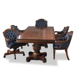 La colección Dalí es una colección completa de diseños muy elegantes y tradicionales marcadas por el uso de tallas de madera, características como toques de oro, y los bordes pulidos para acentuar la elegancia. Chapa de raíz, marquetería en chapa de olivo y sicomoro, pan de oro en las tallas, herrajes de latón.