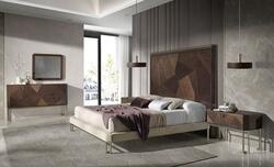 La cama Bond irradia un toque de opulencia en cualquier ambiente. Sus formas geométricas no convencionales le confieren una identidad única. La colección Bond se elabora utilizando diversas chapas que se armonizan en la base con metales entrelazados de forma elegante.