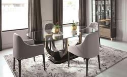 La mesa de comedor SOHO, destinada a ser la pieza de referencia, es el epítome de la artesanía perfecta y la atención al detalle. Con la tapa de cristal, presenta un aspecto retro dinámico hecho de una sugerente combinación de líneas rectas y curvas, sólidos y huecos. La base lleva un detalle de metal que crea una coincidencia visual con las bases de los aparadores y vitrinas.